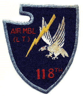 service...free of charge." "I showed my idea to Major Hayes. He loved it...although he wanted Armor Yellow as the background color instead of the teal blue we all know. I was able to convince him that the predominant color should be that of Army Aviation. He reluctantly agreed and directed that we develop a prototype!" " 'Cheap Charlies' tailor shop on Tu Do street in Saigon made the original rendition of the 118th patch. Major Hayes made the final color selection. He loved the diving Eagle with the Thunderbolt. The yellow color he selected in honor of his Armor heritage! To this day I believe he wanted yellow as the background color." "I believe we were the first Army Aviation unit to put a logo on the front of a Huey that was not a unit designator. The Eagle looked so good and later made its way to the battery compartment, also. " "Major Hayes also had each platoon's aircraft tail rotor pylons painted yellow, red and blue (Infantry blue was not possible because I believe Captain Jim Hughes or Captain Frank Radspinner, the 573 Transportation Detachment Commanders could not get the color right so Teal Blue went on the tail rotor pylons.) Now you know how the platoons came about having the color stripes on the tail fins!" "Jim Hughes and Frank Radspinner were very professional and experienced maintenance officers and Major Hayes was used to dealing with armored vehicle readiness rates and not Helicopter readiness rates. He drove those two esteemed gentlemen-- who were also very good guys--- nuts, when they told him all aircraft were not 100% ready. Accordingly, he blamed them for the non-Infantry dark blue paint." "The notch in the upper left of the "shield" came about after the third try by Disney. First was a circle which seemed boring because every fighter squadron in WWII had a circle patch. Second try was a diamond but the eagle was cramped and I wanted the eagle. The third try was the "notched" shape shield, which was very distinctive. I don't know where they got it."