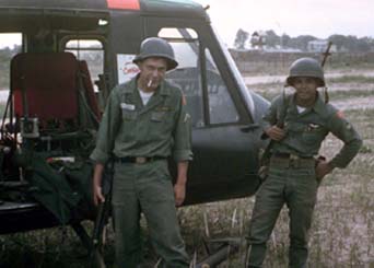 Jimmy Thompson remembers: "I was with the 65th Engr Bn in Hawaii, having joined the division in May of 63. The 65th was asked to provide a platoon of door gunners to depart for Vietnam in December of 1963. I was the Platoon SGT. of that platoon. We arrived in Vietnam about the 10th of December after a trip on a C-130 that had us spending two days in the Philippines due to maintenance problems with the plane." "We arrived at Tan So Nhut and were taken by bus to Bien Hoa and the 118th. We spent 90 days there flying eagle flights and combat assaults. I also remember Colonel "Coal Bin" Willie Wilson. He was a stickler for military protocol." That was at that time when it was a five day war. When the week-end came a number of the people went to Saigon for the weekend!" |