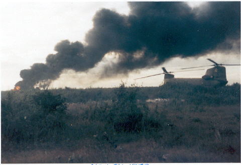 "You (Duane Speirs) must have had a ring side seat that day! I know that I, as AC in the left seat, could not see what was going on the right side of the aircraft as you, my pilot, could see. (Remember, not co-pilot! We had no co-pilots then). I remember the rotor system of chalk 2 spinning off, and the tail boom falling away, with the crew cabin doing a slow roll to the right as it fell to earth. It exploded into an orange flame and then black and brown. As we descended, chalk 3, CPT Al said over the radios that his aircraft was following chalk 2 down. I told CPT Al to get back up there and lead the flight on, which he did. (I, a WO1 and not even at that point a CW2, should tell a CPT what to do!) We landed near where chalk 2 had fallen and exploded. I told our crewchief to get out and see if anyone had fallen or jumped from chalk 2. He did, and in head high grass, was out of my sight in seconds. About two seconds after he disappeared, I began to worry. Had I sent him out on a mission that may kill him, or worse? Finally he returned and said that it was just too hot with ammo exploding, to continue. I was so glad to get him back I didn't care what he had done! We then flew over to where lead had gone down. I did not expect it to be any different from what we had seen at chalk 2's location. The lead aircraft seemed to be intact as we landed. And unlike before, I elected to be the one to go over to see how they were. The pilot seemed to be OK, but stated that he thought his wrist might be broken. I went to the left side of the aircraft and CPT Lemieux looked at me and said "Dale, I had no control over this thing!" I looked down at the left tail rotor peddle and it was bent to the FLOOR!! I have no idea how many pounds of force would be needed to do that, but much more than I have in me. Sorry if I have brought back some bad memories." Dale Moore |