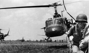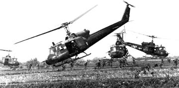 | Alan Laya, CH-21 pilot and HU-1 pilot during the change over remembers: "The HU-1's finally began to arrive but not before we were involved in one more combat assault north of Phan Thiet. With B-26's, T-28's and Armed Huey's(UTT), the mission was a success. The landing zone was beyond belief; an area large enough for a single ship, but rough enough to never want to see it again. We had four LZ's and flew in flights of four so each approached his respective LZ at the same time. I had to drop the aircraft over a tree line then try and bring it to a hover because of the mounds and tree stumps. With ten troops on board, I couldn't salvage the landing and had to bring it to the ground. Fortunately, we hit solid ground with no forward roll, but on the next lift into the area, we were not as fortunate. I landed on a mound knocking the big beast(H-21) to one side. She started to tip on the left side but we did have enough power to straighten her and bounce her in again this time level. In leaving the area the trees in front of us presented quite an obstacle. I can still feel that front wheel clipping the tree tops as we pumped the collective trying to retain power to get airspeed and then altitude. Another day, another combat assault, a few more gray hairs and another trying day for the nervous system. That day will always be memorable because it was the last time I flew an H-21! We had our HU-1's waiting for us in Saigon." |
