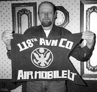service...free of charge." "I showed my idea to Major Hayes. He loved it...although he wanted Armor Yellow as the background color instead of the teal blue we all know. I was able to convince him that the predominant color should be that of Army Aviation. He reluctantly agreed and directed that we develop a prototype!" " 'Cheap Charlies' tailor shop on Tu Do street in Saigon made the original rendition of the 118th patch. Major Hayes made the final color selection. He loved the diving Eagle with the Thunderbolt. The yellow color he selected in honor of his Armor heritage! To this day I believe he wanted yellow as the background color." "I believe we were the first Army Aviation unit to put a logo on the front of a Huey that was not a unit designator. The Eagle looked so good and later made its way to the battery compartment, also. " "Major Hayes also had each platoon's aircraft tail rotor pylons painted yellow, red and blue (Infantry blue was not possible because I believe Captain Jim Hughes or Captain Frank Radspinner, the 573 Transportation Detachment Commanders could not get the color right so Teal Blue went on the tail rotor pylons.) Now you know how the platoons came about having the color stripes on the tail fins!" "Jim Hughes and Frank Radspinner were very professional and experienced maintenance officers and Major Hayes was used to dealing with armored vehicle readiness rates and not Helicopter readiness rates. He drove those two esteemed gentlemen-- who were also very good guys--- nuts, when they told him all aircraft were not 100% ready. Accordingly, he blamed them for the non-Infantry dark blue paint." "The notch in the upper left of the "shield" came about after the third try by Disney. First was a circle which seemed boring because every fighter squadron in WWII had a circle patch. Second try was a diamond but the eagle was cramped and I wanted the eagle. The third try was the "notched" shape shield, which was very distinctive. I don't know where they got it."