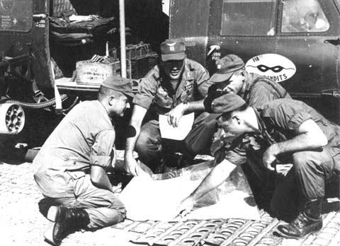 | Jack Phillabaum, Operations Officer of the 33rd/118th remembers; " The first UH-1B operational mission was actually flown on 15 Sep 1963. A mission request came in asking us to fly to Tay Ninh to pick-up an injured civilian, at night. I requested permission and permission was given,(from who I don't remember) to use the UH-1B instead of the H-21. With Lt. Chad Payne in one aircraft and me in another, we received a radar vector from Tan Son Nhut while an Air Force A-20 flew overhead cover, and we completed this first UH-1B mission for the 118th." |