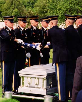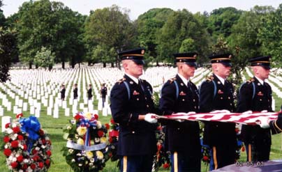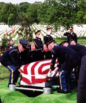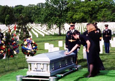 in the same grave at Arlington National Cemetery on May 3, 2002.