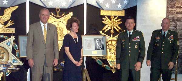 the Congressional Medal of Honor from President George Bush flanked